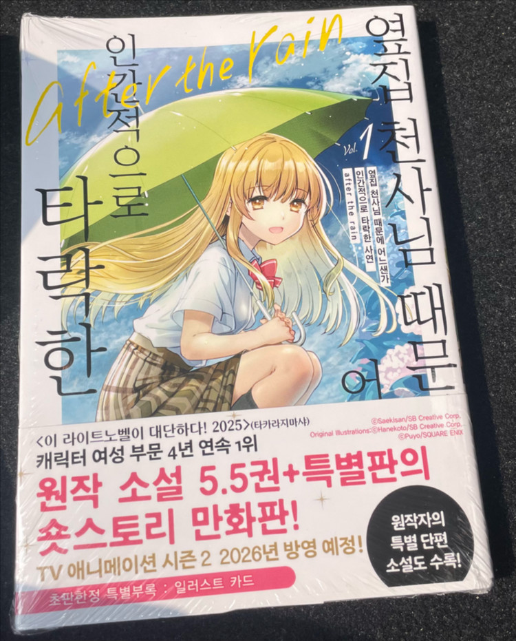 옆집 천사님 때문에 어느샌가 인간적으로 타락한 사연 after the rain 1권 초판 미개봉 팜 -환불 불가 입니다 -문의 없으시면 바로 결제하세요 -택배비 별도, 일반택배&씨유반값 택배 선택 -제주도는 일반 택배비에 3천원 추가 있습니다