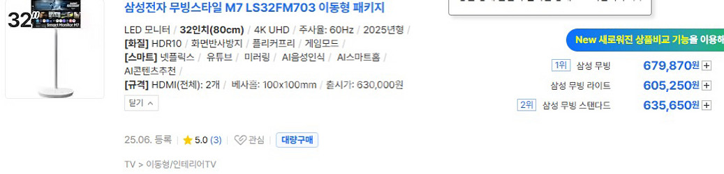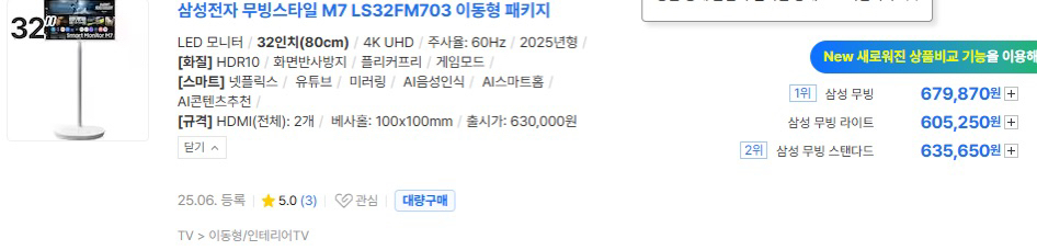 (신품)삼성 무빙스타일 32인치 모니터 무빙 패키지