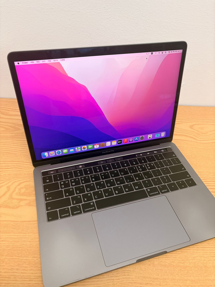 맥북프로 터치바 2018 13인치 (A1989) (가-13) CPU: I7-8 RAM: 16GB SSD: 512GB 사이클 횟수: 234회 외관 상태: 베젤 모서리 쪽 미미하게 생활기스 존재하나 전체적 상태 깨끗하고 좋습니다. 내부 기능: 화면, 키패드, 포트, 스피커, 마이크, 카메라, 터치바 모두 정상 작동 확인