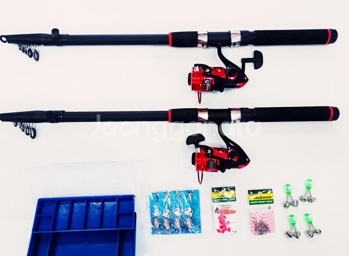 1, 원투낚시대 360 릴대 2대로서 블루와 블랙중 임의배송 해드립니다. 블루 ; 8마디로 구성, 접은길이 67cm, 블랙 ; 7마디로 구성, 접은길이 70cm, 펼친길이 3.6m입니다. 2. 원투용 4000번릴 2대로서 기어비 5.2;1이며 5호줄 감아놓았습니다. (릴 색상은 랜덤으로 발송해드립니다) 3. 테클박스는 가로20cm, 세로 10cm, 높이 4.5cm 열었을때 2중 구조로 되어 있어 수납이 편리합니다. 묶음추 4개, 핀도래 1봉, 구슬 1봉, 방울 4개를 테클박스에 넣어 드립니다. 방울에 케미라이트 취부구가 있어 야간낚시도 가능합니다. 미끼만 있으면 즉시 낚시가 가능하며 입문용으로도 적당합니다. 민물원투낚시, 장어낚시, 좌대낚시,바다원투낚시, 방파제낚시등 두루 사용이 가능합니다. 모두 미사용품이며 택배비 부담하겠습니다 오9오3 사사오O입니다