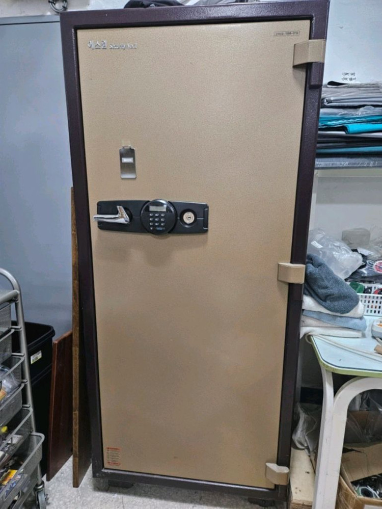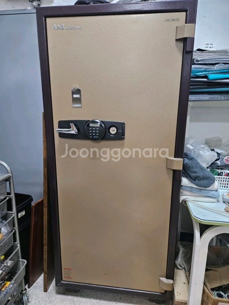 대형금고인데 열쇠분실로 사용안하고 있던 제품이예요. 열쇠는 새로 맞출수 있다고 들었습니다. 비밀번호와 열쇠로 같이 열어야하는 모델이예요. 비밀번호는 알지만 열쇠는 새로 맞추셔야 합니다. 높이 160정도예요. 무거워서 성인남성 2~3명 오셔야해요. 빨리 가져가실수 있는분께 드릴게요! 엘베없는 창고 지하1층에서 가지고 올라오셔야해요. 서울 은평구 응암역 인근 010.4663.231l 쪽지로 연락주시면 잘 못봅니다. 카페 채팅이나 문자주세요.
