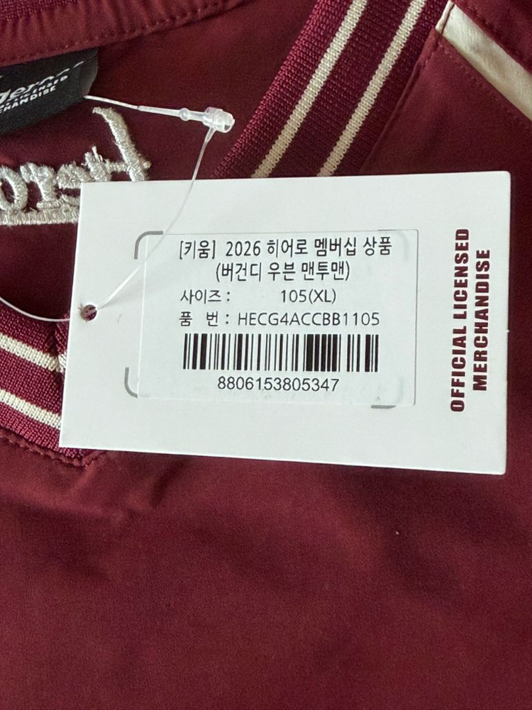 개인정보(거래정보)를 주고받는 행위는 사기에 노출될 수 있으므로 즉시 중고나라로 신고해 주세요키움 히어로즈 2026 멤버십 상품인 버건디 색상의 맨투맨입니다. 사이즈는 105(XL)입니다. 같은 색상에 110(XXL)이신분. 그러나 커서 한사이즈 작은걸 원하시는분. 저와 교환 하시겠습니까? 택배 받자마자 사이즈 확인차 한번 입어봤을 뿐 전혀 사용하지 않았습니다. 관심있으신분 연락주세요~
