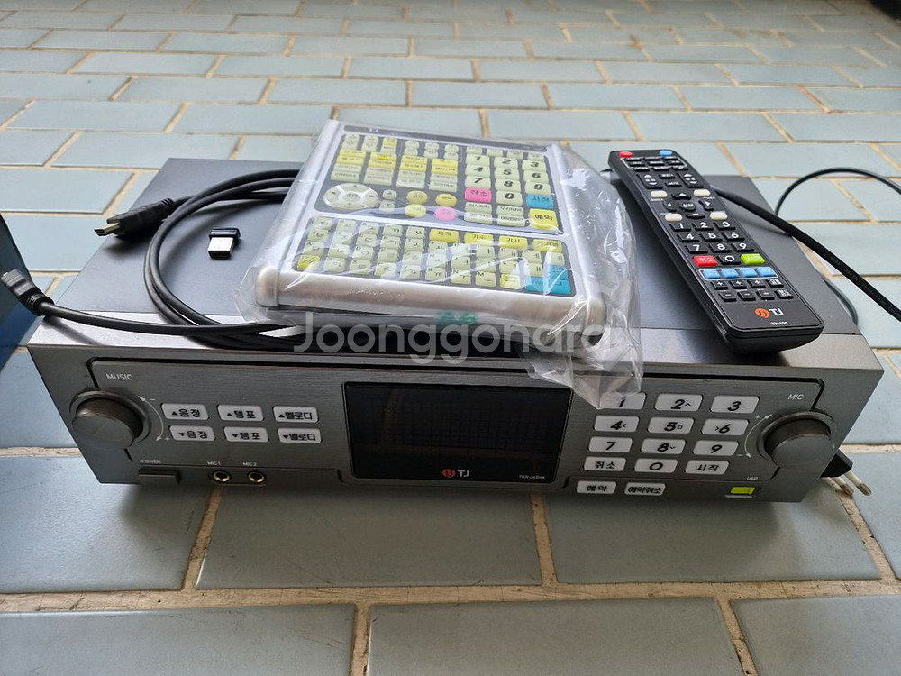 안녕하세요. 태진미디어 노래방 반주기 TKR-365HK 판매합니다 // 집에서 1번 사용하고 창고에 모셔놔서 외관 및 디스플레이 모두 흠없는 S급입니다. 노래는 업데이트를 한번도 하지 않아서 업데이트 하셔야 합니다. 구성품은 본체+와이파이 동글이+HDMI to HDMI 케이블+대형리모콘+소형리모콘 입니다. 직거래, 택배거래 모두 가능합니다.