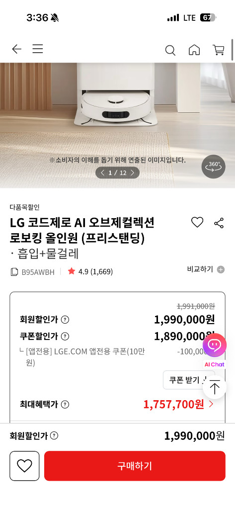 개인정보(거래정보)를 주고받는 행위는 사기에 노출될 수 있으므로 즉시 중고나라로 신고해 주세요로보킹 AI 올인원 프리스탠딩(B95AWBH) 팝니다. 미개봉 새상품이며 상품 크기 때문에 택배거래는 힘들 것 같네요. 거래 지역은 부산~대구(구미) 가능합니다. 직배수 타입 원하시면 엘지 공홈에서 직배수 키트 구매 후 설치 기사님 불러서 설치 가능합니다.
