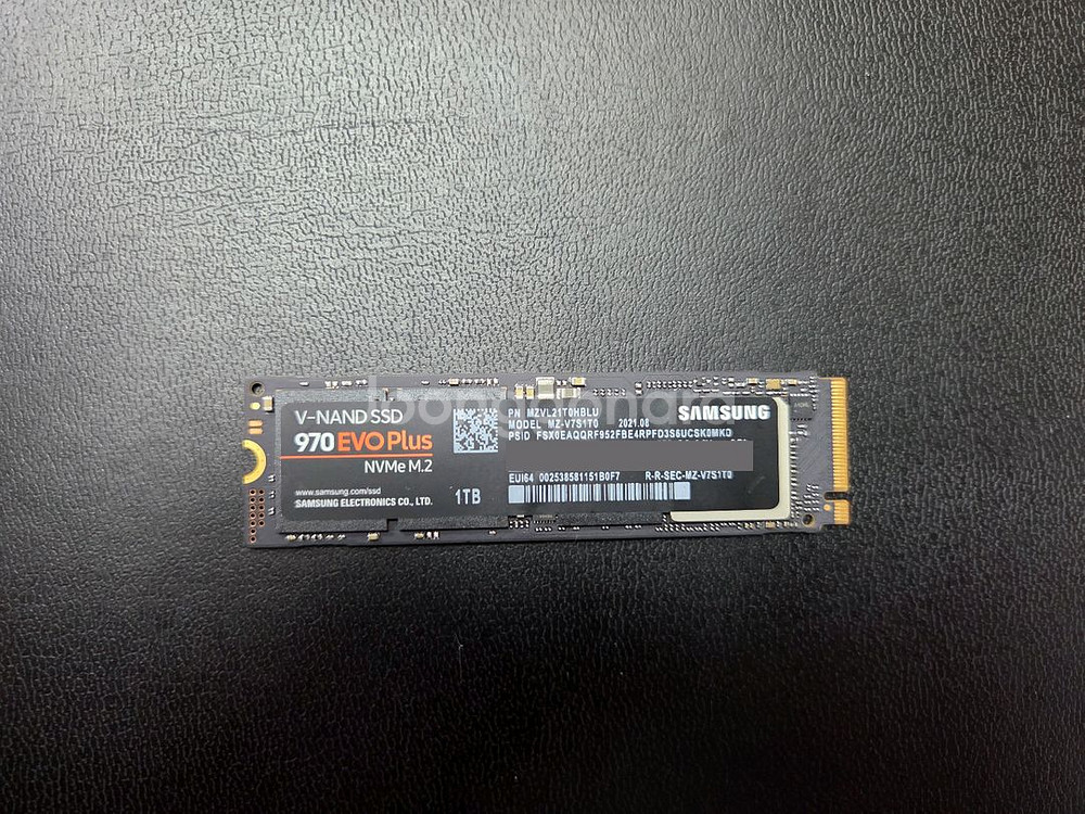 삼성 970 EVO Plus M.2 NVMe SSD 1TB 팝니다. 보증기간 2026년 8월까지 NVM Express, PCIe 3.0 × 4 TLC/DRAM/SLC캐시(42GB) 최대 (읽기)3,500MB/s (쓰기)3,300MB/s 600TBW, 잔존수명 99.75% (쓰기 약 1.5TB)