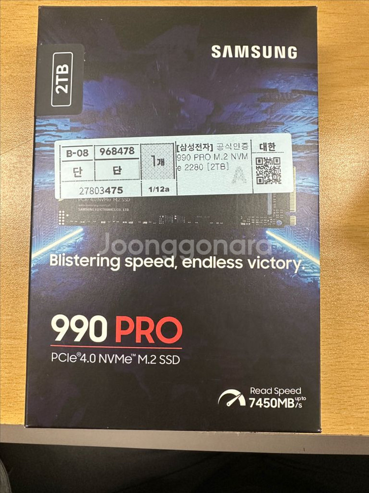 상품명 : 삼성전자 M.2 SSD 모델명 : 990 PRO 2TB NVME 4.0 구매시기 : 2026년.01월 사용기간 : 미사용 새제품 (국내정품) 시리얼확인 보증기간 : 5년 국내 정발이고 씰 개봉하지 않은 미개봉입니다 제품 보증기간은 31년 01월까지입니다 직거래는 수원 영통입니다.
