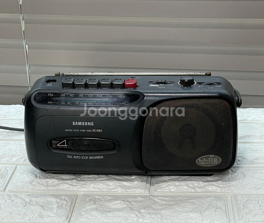 개인정보(거래정보)를 주고받는 행위는 사기에 노출될 수 있으므로 즉시 중고나라로 신고해 주세요삼성에서 나온 RC-A24 카세트 라디오입니다. FM/AM 라디오 기능 이상 없이 잘 작동됩니다. 수신률도 좋고 소리도 괜찮네요. 카세트 테이프는 재생은 안되고 모터 소리만 납니다. 전원선 포함 입니다.