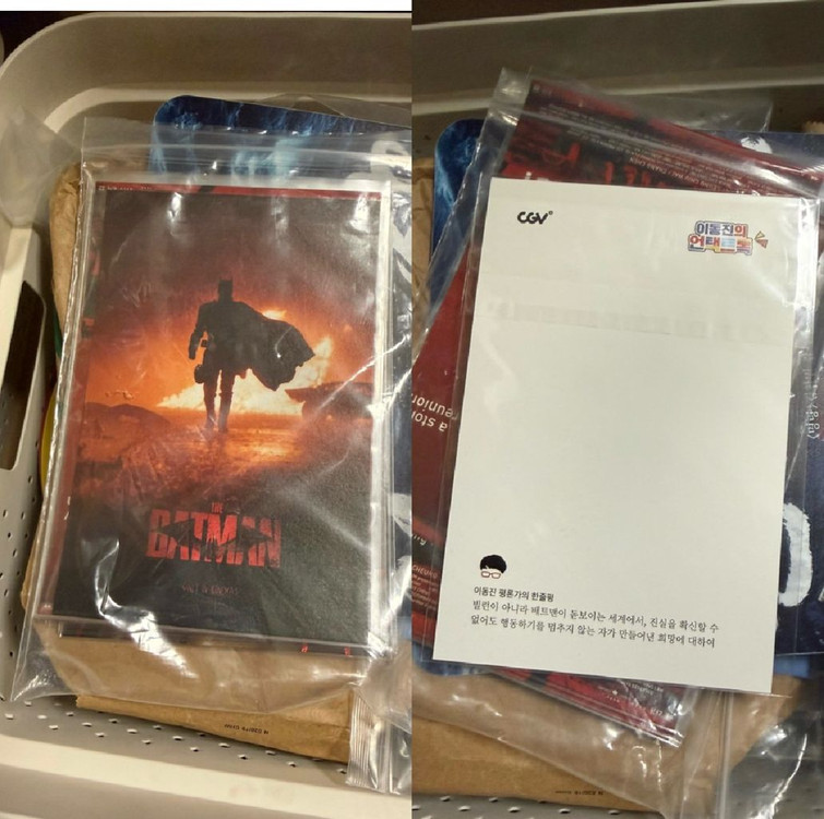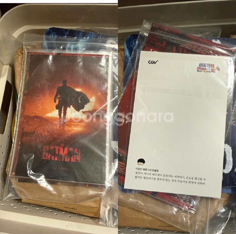더배트맨 언택트톡 엽서 8000 필름마크 8000 아트카드 판매중 더 배트맨 스페셜티켓 2종 판매중 오리지널티켓 판매중 CGV 골든티켓 판매중 더배트맨 키링 7000 CGV 스크린엑스 코믹북 5000 CGV 시크릿 미니 포스터 배트맨 완료 캣우먼 5000 펭귄 4000 메가박스 캐릭터 미니 포스터 세트 완료 ScreenX 포스터 15000 알뜰반값택배 2500 / 일반택배 4500 포장 안전하게 보내드립니다