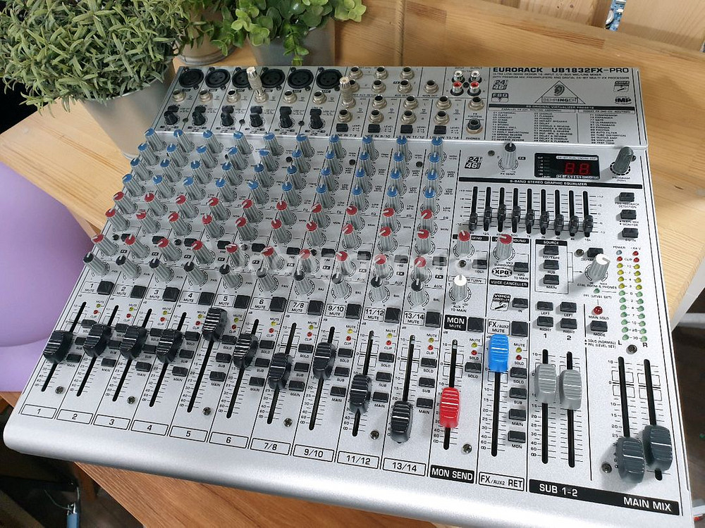 베링거 EURORACK UB1832FX-PRO 믹서 파워케이블 있습니다 6개의 마이크 프리앰프를 포함한 총 18개 입력 채널. 9밴드 스테레오 그래픽 EQ 내장. 24비트 디지털 FX 프로세서(이펙터) 내장되어 있어 에코나 리버브 조절 가능. 서브 아웃풋(Sub Groups) 기능이 있어 녹음이나 복잡한 음향 세팅에 유리함 안산이구요 타지역 택배 가능합니다 OIO8O58488I