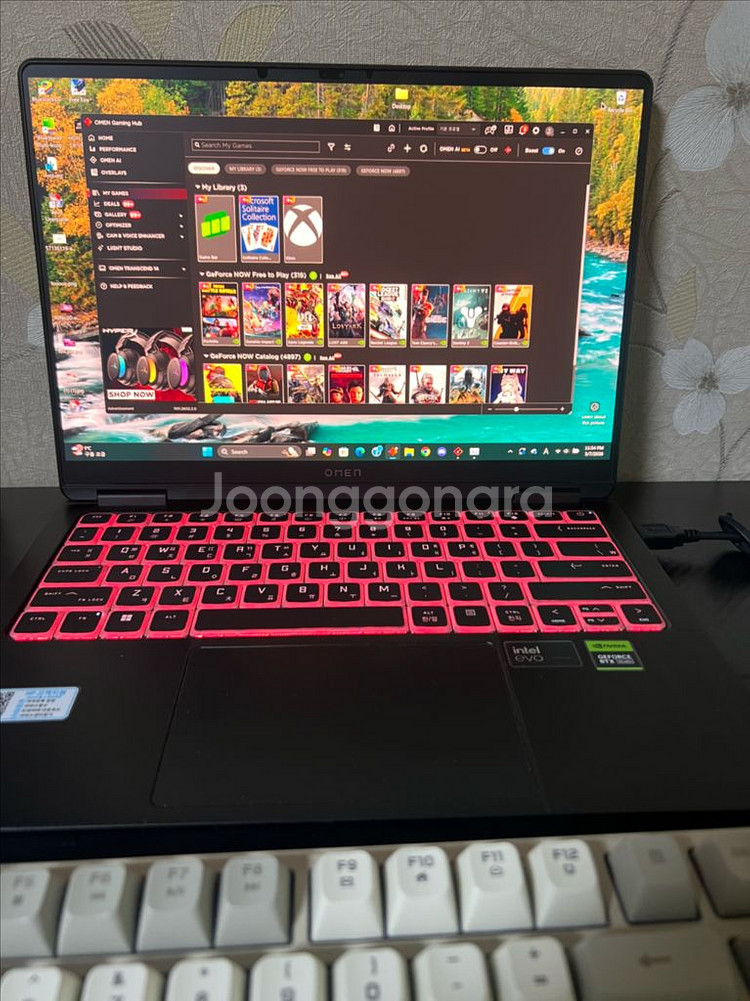 HP OMEN 14 Slim 게이밍 노트북 판매합니다 일반 게이밍 노트북에 비해 아주 얇고 가벼운 모델입니다. 무게는 약 1.65kg이며 슬림한 디자인으로 휴대와 이동이 매우 편리합니다. 게임뿐만 아니라 작업이나 공부용으로도 좋은 노트북입니다. 정품 Windows 11이 설치되어 있으며 (라이선스 가격 약 20만원) 바로 사용 가능합니다. 구매 직후 내·외부 보호필름을 부착했고, 화면에는 저반사 필름을 붙여서 상태가 매우 깨끗합니다. 겉면에 작은 기스 하나가 있지만 사용이나 성능에는 전혀 영향이 없습니다. **풀박스(Full Box)**이며 전체 상태 매우 좋습니다. 사양 • Intel Core Ultra 9-185H 프로세서 • RAM 32GB • NVIDIA GeForce RTX 4060 • SSD 1TB • 14인치 디스플레이 관심 있으신 분은 연락 주세요.