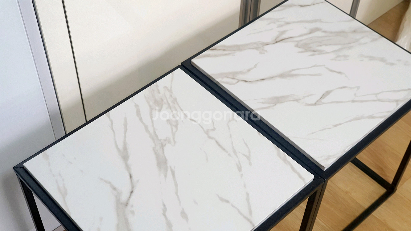 마블패턴으로 리폼한 소파테이블입니다. 아무래도 리폼한거라 기성품 새것처럼 깔끔하진 않지만 깨끗하고 모던합니다. 웬만한 인테리어에 다 잘 어울리고 디자인이 고급스러워요.(실제로는 약간 베이지빛이 나는 마블인데 어떤 사진은 좀 하얗게 보여 최대한 실물과 가깝게 찍으려고 했어요) 맨 끝에 예전 집 실제 사진입니다. 소파 앞에 이렇게 놓고 썼어요. 적재도 가능해 다양한 방법으로 인테리어 가능합니다. 너무 무겁지도 너무 가볍지도 않아 옮기기도 좋고 터무니없이 밀림도 적습니다.