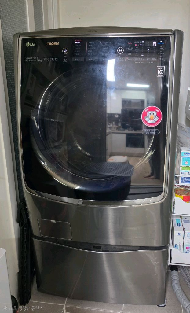 LG 트롬 세탁기 F21VBW 모델입니다 - 21kg 용량으로 넉넉하게 사용 가능해요 - DD인버터로 소음은 적고, 에너지 효율은 높습니다 - 에너지 소비 효율 1등급 제품입니다 - 제조년월은 2017년 11월입니다 - 아래 미니 세탁기는 아기 옷만 세탁 했었습니다. LG 건조기 RH9SAW 모델입니다. - 9kg 용량입니다. - 건조기 돌리는 소음이 생겨서 수리받았는데 아직도 미세하게 들립니다. - 세탁기랑 같은 시기에 구매했습니다. 가져가시는 날짜는 조율합니다~ 직접 가져가셔야 합니다. 따로 판매하지 않고 같이 판매합니다. 쿨거래시 네고 가능합니다. 환불X