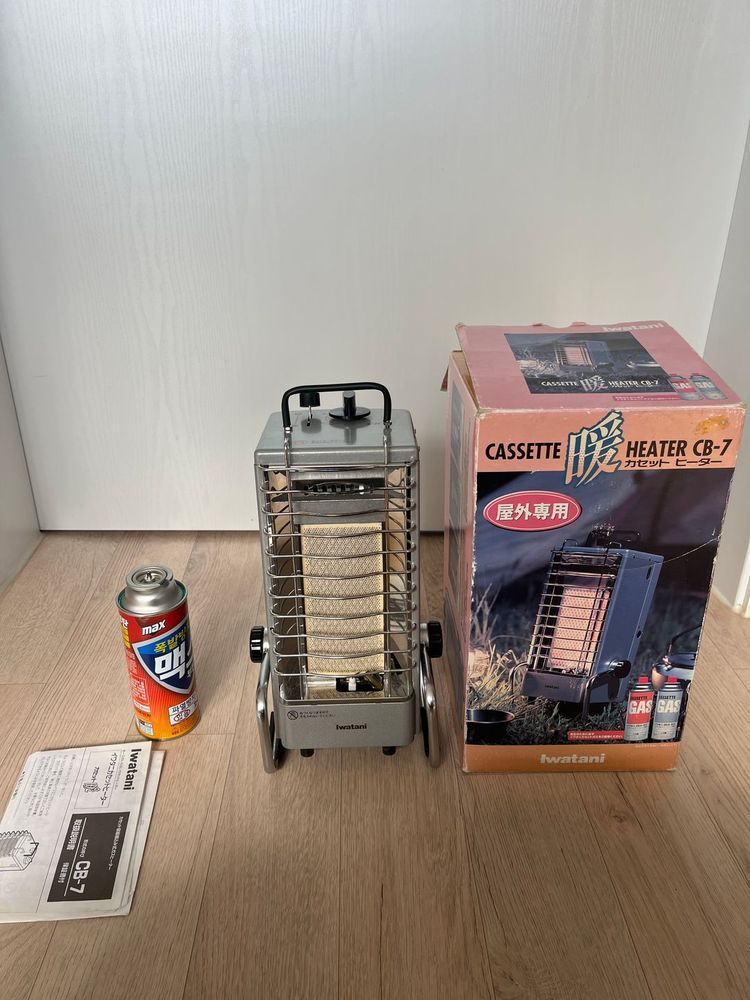이와타니 CB-7 휴대용가스히터 포터블히터 미니히터 캠핑 낚시 글램핑 차박용 팝니다 외관상태 작동상태 좋구요 오래전 일본에서 구매했다가 보관중인 상품이며 현재는 구하기 힘든 제품입니다 사진상 부탄가스는 제외 발열량 1400Kcal 연속사용시간 최대화력으로 약 2시간 크기 280 x 230 x 260 mm 무게 약 2.5mg