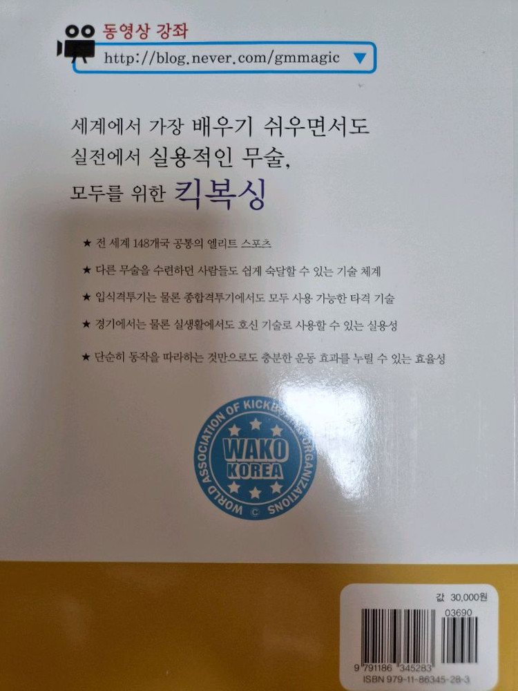 킥복싱 새 책 정가3만원 모두를 위한 킥복싱