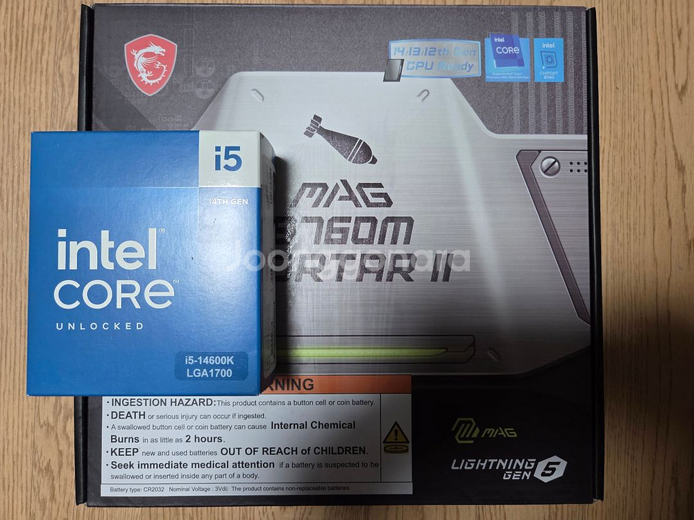 개인정보(거래정보)를 주고받는 행위는 사기에 노출될 수 있으므로 즉시 중고나라로 신고해 주세요인텔 i5 14600k 국내 정품 박스 msi b760m 박격포2 국내 정품 박스 비흡연자로 깨끗하고 상태 좋습니다