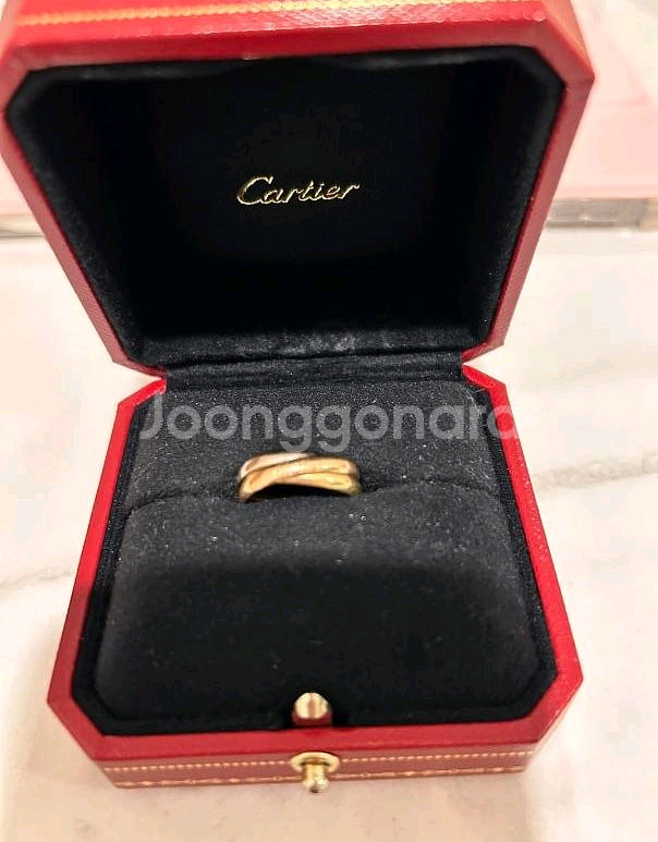 까르띠에 트리니티 링 50호 판매합니다 2023년 3월 13일에 구매한 제품으로, 옐로우, 화이트, 핑크 골드 3가지 색상의 밴드가 조화롭게 얽혀있는 클래식한 디자인입니다 까르띠에의 상징적인 디자인으로 많은 사랑을 받고 있으며, 어떤 스타일에도 잘 어울려 데일리로 착용하기 좋습니다 수완동 코오롱 으로 오시면 거래 가능해요 ~ 박스와 보증서 모두 포함되어 있습니다