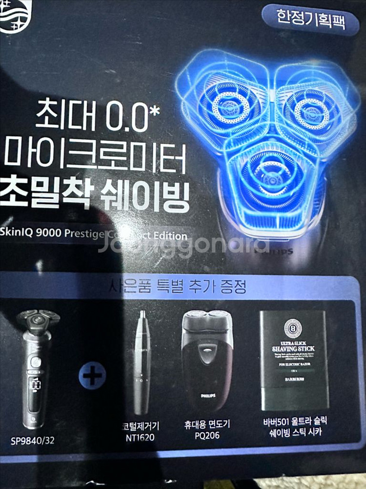 필립스 SkinIQ 9000 프레스티지 시리즈 전기면도기 9840/32 미개봉 새상품 정가 44.9 필립스 최상위 9천시리즈중 에서도 프리미엄 프레스티지 라인이구 최상위 9천시리즈랑 스펙차이도 많이납니다 프레스티지는 분당 16만5천 초정밀 나노컷팅입니다 및 헤드는 울트라 플렉스 서스펜션 장착되있고 하이드로 스킨 글라이드코팅 50만 마이크로 비즈 디지털 LED 디스플레이 장착 등등 프레스티지 이하는 초정밀 일반 컷팅 본품 구성품 무선세척팟 트리머 프리미엄 파우치 아답터 세척액 본품구성품 이외에 + 추가로 한정에디션으로 활용도 좋은 필립스 휴대용 면도기 코털 제거기 바버501 쉐이빙스틱 추가 들어있습니다 추가 구성품만 해도 가격 꾀나옵니다 저도 프레스티지 사용중이라 아버님 드렸는데 습식면도기만 쓰시다보니 안쓰신다하여 내놓습니다 27만에 프레스티지 라인에 이구성은 못구할듯합니다 휴대용면도기 콧털제거기 쉐이빙스틱 없는 본품만 최저가 31.9 불필요질문 절충 문의 받지않습니다 빠른 송금시 택배비 판매자 부담 택포 27 안심결제 희망시 안심결제 해주시면 됩니다 송금시는 문의주세요