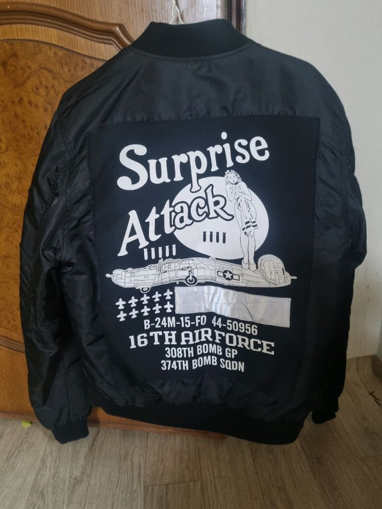 스파이더 블루종 자켓이에요. 뒷면에 'Surprise Attack' 프린트와 함께 16TH AIRFORCE 패치가 달려있고, 소매 부분에도 스폽 디자인이 있어서 멋스러워요. 전체적으로 상태 양호한 새거급제품입니다. 편하게 제상점도둘러보시고쳇주세요. 별도 문의 없으시면 바로 안전결제해주시면 감사하겠습니다