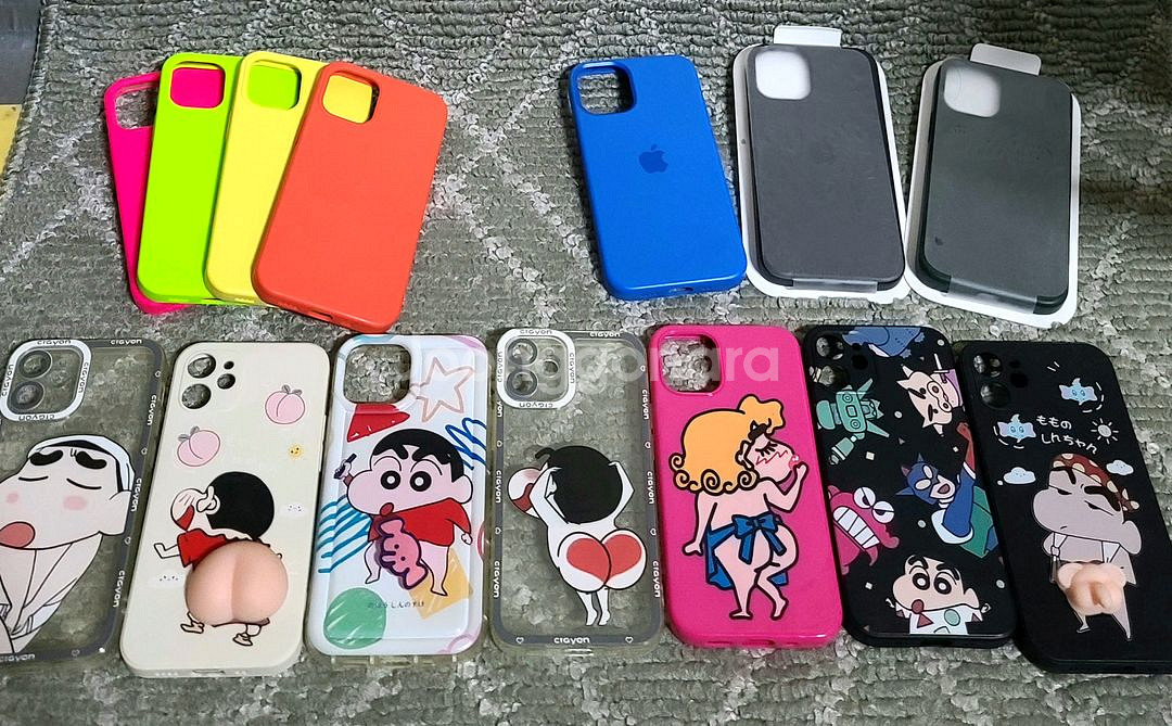 아이폰12미니 케이스 내놓습니다. 정품 맥세이프 실리콘 3개 검정, 녹색, 파랑으로 파란색만 사용감 있고 나머지는 신품입니다. 형광색 4개, 짱구시리즈 7개 모두 상태 깨끗합니다. 일괄만 판매 하겠습니다. 택배시 4000원 추가로 환불, 교환은 죄송합니다.