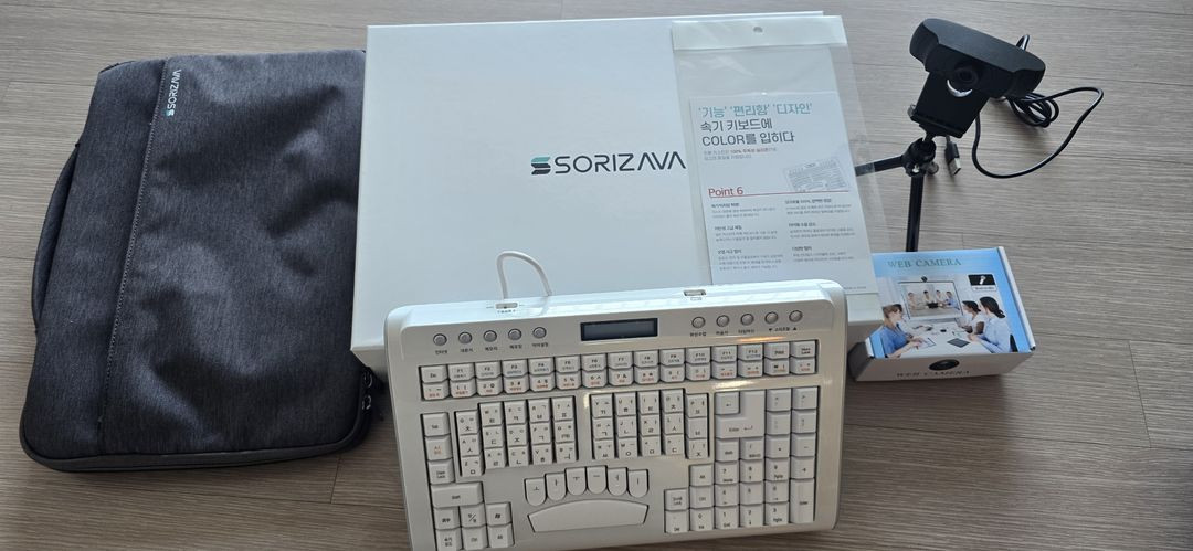 소리자바 속기 키보드와 웹캠 세트 판매합니다. 키보드는 ZAVAFOS 신제품 모델(SZ6022)이며, 다양한 기능 키와 숫자 키패드를 갖추고 있습니다 함께 제공되는 웹캠은 삼각대와 함께 사용할 수 있어 손목 및 자세교정에 도움이 되며, 소리자바 노트북 파우치도 포함되어 있습니다. 중고 고민이신분 적극 추천드리며, 실사용 5회 미만으로 보시면 아시겠지만 깨끗합니다. 구매가격은 320만원이나, 저렴한 가격에 내놓습니다.