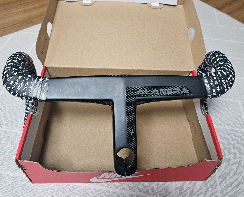 데다 알라네라 일체형 카본 핸들바 입니다 픽시,로드 둘다 사용 가능하구요 사진상 그대로 나가구요 엔진11바테잎 장착 되었습니다! 생활기스좀 있구요 (사진 참고) 스템쪽 나사 한곳이 헛돔이 있습니다 (주행지장x) (끼고 뺄때 지장x) 저는 주행 이상없이 잘 사용했습니다 헛돔 빼면 상태는 좋구요 이 점 감안하고 자접이라 싸게 넘깁니다. 궁금한거 채팅 부탁드립니다 거래는 편의점택배나 직거래만 합니다 (경기도 안양 거주)