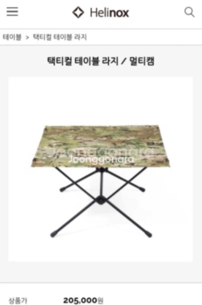 (가격인하) 헬리녹스 택티컬 테이블 라지 / 멀티캠 공홈가 205,000원 우체국 택배로 발송 합니다. 택배비는 제가 부담합니다. *멀티캠 상판 사용한적 없어요. 퓨파캠프 우드상판 장착해서 볼핏 끼고 데크위에서 프레임만 2회 사용 했습니다. 신품급 상태입니다. 선물로 테이블 하부 수납망 드립니다