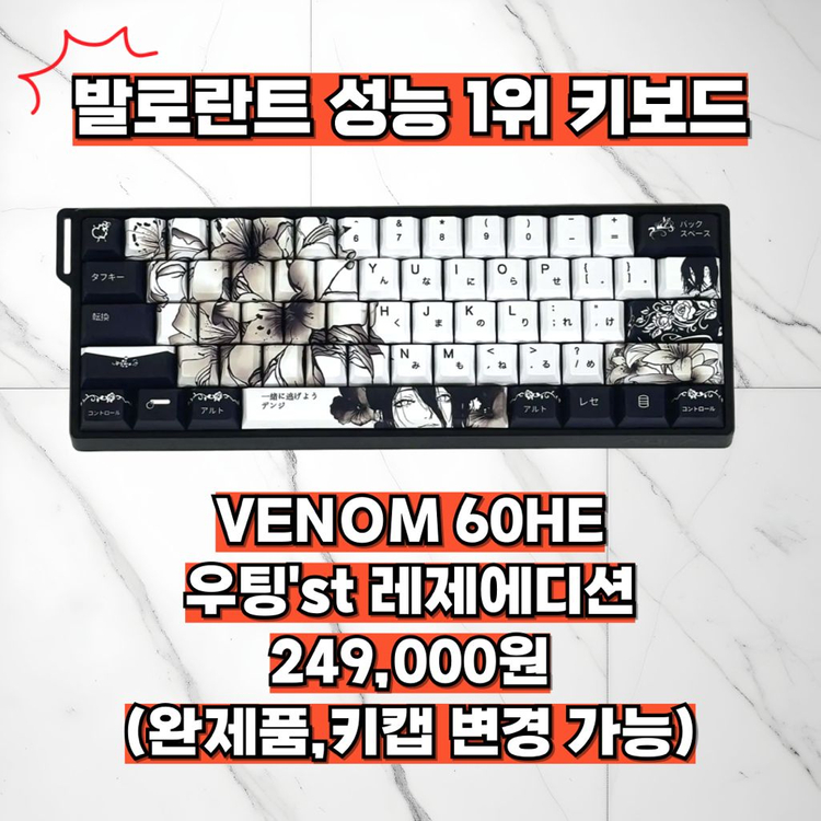 🛠️ A/S 2년간 보장 🛠️불량테스트 확인 후 발송 - 주문 폭주로 1-4주 정도 소요됩니다. 🔥 국제대회 우승 멤버들이 사용 🔥 발로란트 성능 1위 키보드, 베놈60HE 레제 에디션 – 249,000원 모든 부품을 새상품만 사용✅ 선만 꽂아 바로 사용 가능한 완제품 ✅ ✅R.E.A.L 8K 폴링레이트 (다른 제품은 실제 측정시 가짜 8K) 📦 사용 부품 하우징: AULA Wooting 스타일 플라스틱 하우징 키캡: 레제키캡 스위치: 에버글라이드 X haimu 스위치 → raw he 스위치로 변경 시 +37,200원 스테빌라이저: GDK 기판: GEONWORKS Venom 60HE (6.25u) (재고 부족시 대체) 보강판: venom 60he 알루미늄 보강판 → 그외 변경시 문의 (FR4로 대체될 수 있음) 주문제작 상품으로 약 1-14일 정도 소요될 수 있습니다. 본 상품은 소비자 주문에 따라 개별 제작되는 맞춤형 상품으로, 「전자상거래 등에서의 소비자보호에 관한 법률」 제17조 제2항 제4호에 따라 주문 완료 후 단순 변심에 의한 환불이 불가합니다.