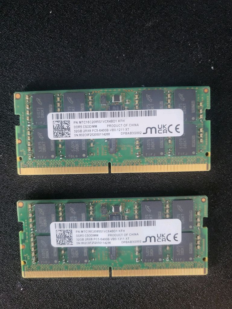 에일리언웨어에서 탈거한 제품입니다 노트북용 마이크론 ddr5 6400 64gb (32g × 2) 25년 20주차 생산 안심결제 택배거래 대구 경산 직거래 가능합니다
