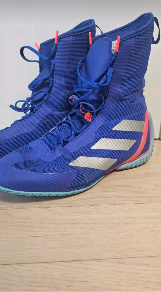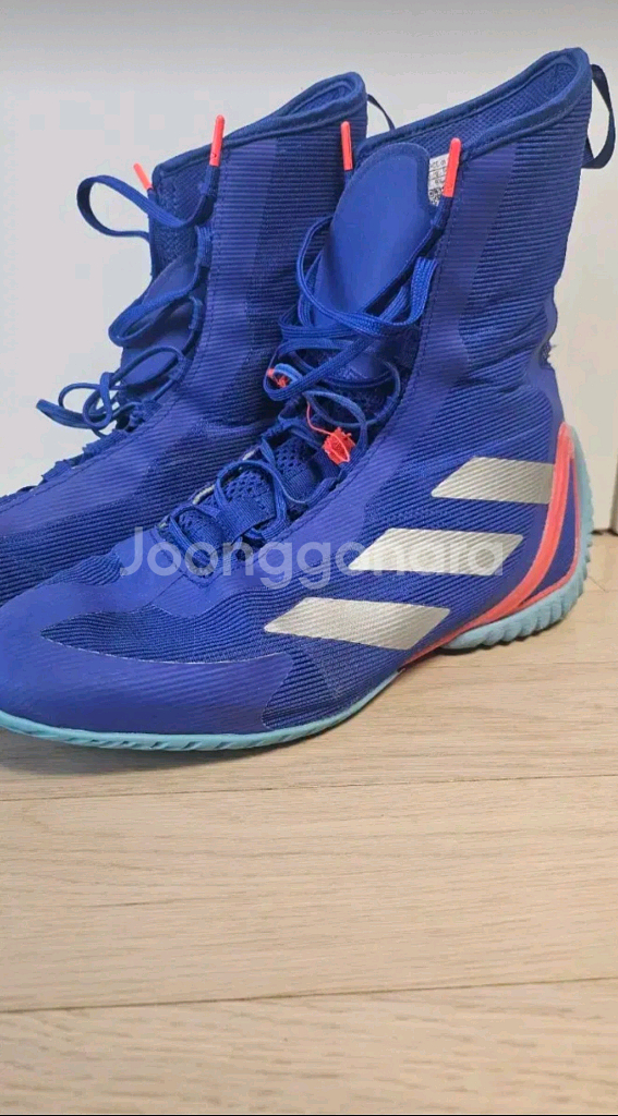 아디다스 스피덱스 울트라 복싱화입니다. 20만원정도 주고 구매했었고, 사용감은 있지만 전체적으로 깔끔한 상태입니다. 사진보시면 신발끈 고정하는 부분이 양쪽 다 뜯겨져서 꼬매서 쓰셔야합니다. 감안해서 싸게 올립니다. 안전결제해주시면 바로 택배 보내드립니다