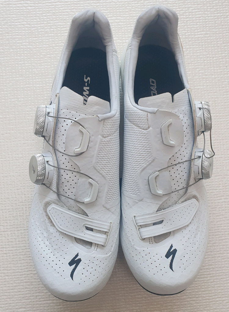 스페셜라이즈드 S-Works 7 로드 클릿슈즈입니다 BOA 다이얼 시스템으로 사이즈 조절이 편리해요 사진에 보이는 구성품 모두 보내드려요 가볍고 통기성이 좋아 라이딩 시 쾌적함을 선사합니다 로드 사이클 최적의 클릿슈즈 사이즈 250 클릿 새것, 보아다이얼 여분 새것, 같이드립니다