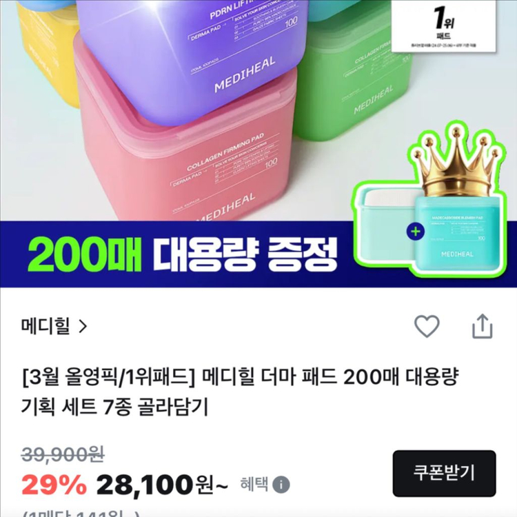 ![[새제품]메디힐 200매대용량/PDRN모공,탄력,리프팅/토너패드 1+1 이미지](https://img2.joongna.com/media/original/2026/03/28/1774672791802SG4_Akni6.jpg?impolicy=resize)