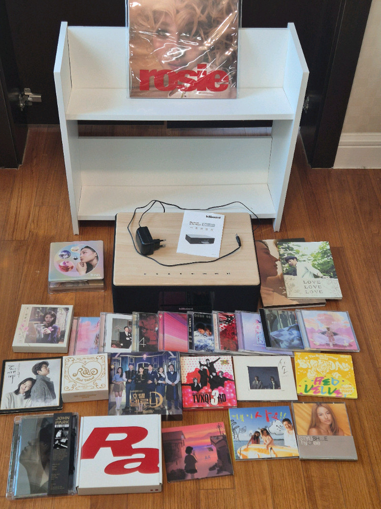 CD 음반 다수 모음집에 빌보드 CD 플레이어까지 드립니다. 개별판매는 하지 않습니다 고가의 CD가 포함되어 있습니다. 아이유, 코드 쿤스트, 도깨비, 야다, 호텔 델루나, 로이킴, 거북이, 쿨, 장범준, 존박, 케이팝 데몬 헌터스, 레드벨벳, 동방신기, 이효리, 로제 등 총 25개의 다양한 CD가 있습니다. CD 플레이어는 설명서와 어댑터, 리모컨이 포함되어 있습니다. CD 플레이어는 얼마 사용하지 않은 새 상품입니다. CD는 5~7장 정도는 겉에 약간의 하자가 있지만, CD 자체에는 문제가 없고 나머지는 완전 새 상품급입니다. CD 전시장은 찍힘 하자가 있습니다. CD 전시장 빼고 구매하시면 만 원 할인해 드립니다. cd장 포함시 배송비가 추가로 부과됨니다 CD 플레이어 음질은 마지막 영상으로 음질 참고 바랍니다. 얼마 사용하지 않아 음질도 좋습니다.