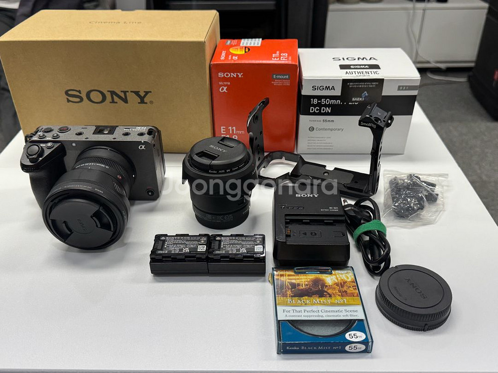 소니 FX30 바디와 소니 SEL11F18, 시그마 18-50mm F2.8 렌즈 일괄 판매합니다. 서브 바디 용도로 사용했던 장비라 실제 사용 횟수는 많지 않은 편이고, 전체적으로 상태 양호합니다. 메인 장비가 아니라 실사용이 많지 않았고, 보관도 신경 써서 해왔습니다. 구성품 및 기준 가격은 아래와 같습니다. - Sony FX30 바디(배터리2,배터리충전기,스몰리그 케이지 포함) : 190만 원 - Sony SEL11F18 : 40만 원 - Sigma 18-50mm F2.8 DC DN : 50만 원 위 구성 일괄 판매 가격은 280만 원입니다. 일괄 판매 우선이며, 궁금하신 부분은 편하게 연락 주세요!
