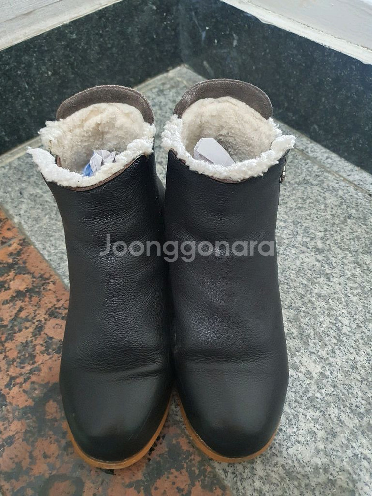 개인정보(거래정보)를 주고받는 행위는 사기에 노출될 수 있으므로 즉시 중고나라로 신고해 주세요따뜻한 양털 안감이 있는 블랙 앵클부츠예요. 사이즈는 235이고 전체적으로 깔끔한 상태입니다. 겨울철 실용적이고 스타일리시하게 착용하기 좋아요. 사용감 거의 없고 브랜드는 써스데이 아일랜드입니다.신발 모양 유지 위해 신문지를 넣어놨습니다.굽은 5센치 정도입니다.