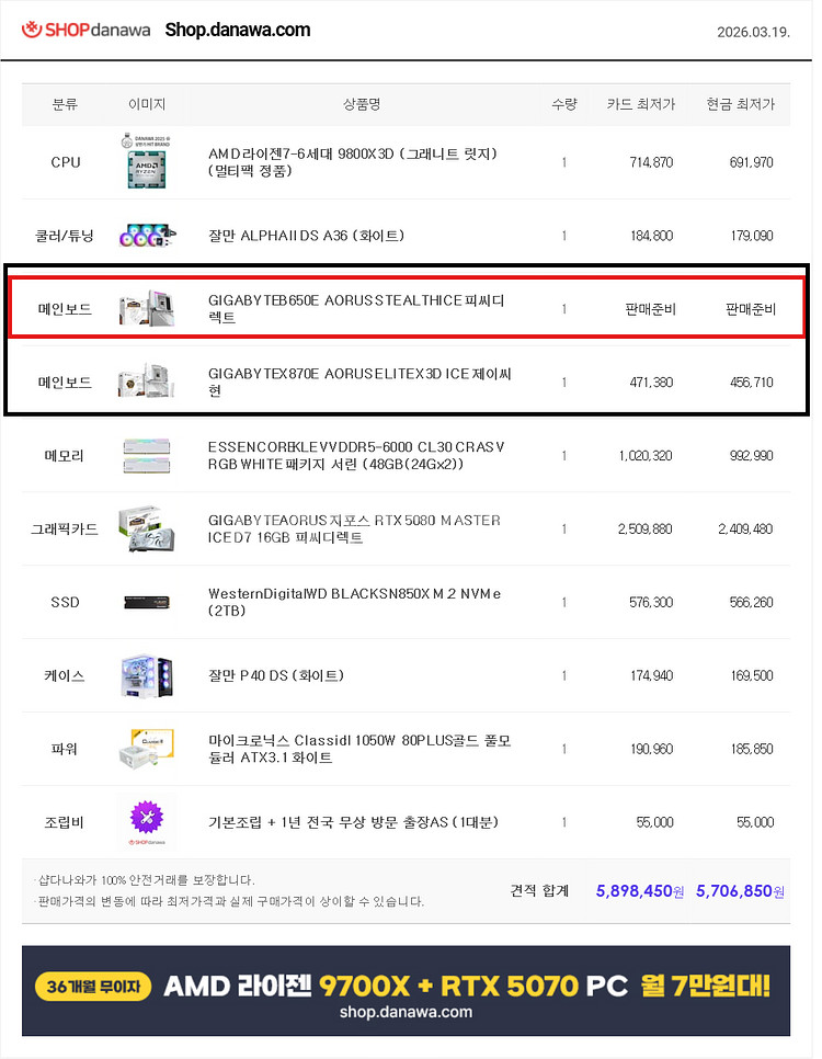 동일 pc 견적 현재기준 다나와 카드가 5,898,450 원 입니다. 메인보드는 구매한 메인보드 품절로 다른 제품 대체해서 첨부했습니다. 작년 6월쯤 구매 했으며 유튜브 및 게이밍 PC 로 세팅해서 큰맘먹고 구매 한건데 계획이 틀어져서 정리합니다. 주문 후 강원도 춘천 출장으로 인해 12월까지 사용 안했습니다. 출장이 잦아질 예정으로 노트북으로 갈아타야 할 것 같아 정리합니다. 사용한 제품 모두 최고제품이고 화이트 감성에 맞게 풀세팅 완료된 PC 입니다. 메인보드 스텔스로 본체 내부 선 하나도 보이지 않게 깔끔합니다. 개인 매물로 신동품에 화이트 감성 이렇게 잘살린 PC는 없다고 생각합니다. 판매사진내역에 보면 메인보드 빨강 테두리 제품입니다. 현재 품절이라 가격이 안나와서 비슷한 매물 제품 비교해보시라고 넣어둔거예요. 메인보드는 650E 스텔스 아이스 입니다. 870E 제품이랑 큰차이없어요. 정말 새거라고 보시면 됩니다. 중고나라 거래내역 매우 많습니다. 거래내역 한번 쭉 보신뒤 안심하고 연락주세요. 모든 제품 박스 그대로 다 있습니다. 윈도우는 11프로 설치되있으며 기본적인 오피스 설치해드려요. PC 부피가 크고 무거워서 택배거래보다는 직거래 선호합니다. 직거래는 천마산역 부근에서 가능하고 장소 조율이 된다면 서울 건대나 마포 공덕역 정도 가능합니다. 직거래 시 차량 있으셔야 합니다. (무거워요) 판매가격은 깔끔하게 530만원에 판매합니다. 에눌 및 3자사기 안통합니다. 연락주세요. 010.8684.0999 예약 거래 안받고 퀵 배송도 가능하나 퀵비는 부담해주셔야 하고 부득이하게 택배거래시 택배비도 부담하셔야합니다. 연락주세요.