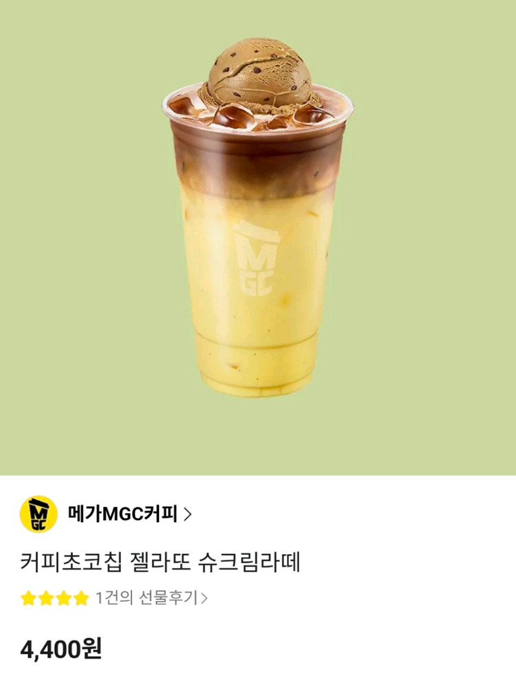 메가커피 커피초코칩 젤라또 슈크림라떼(4,400원->3,600원)
