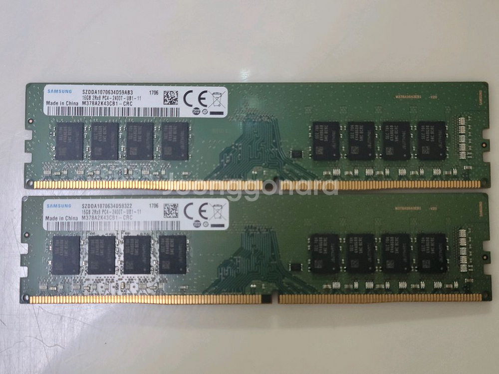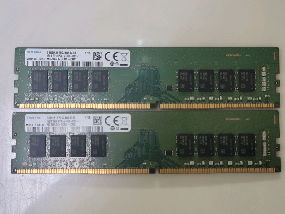 삼성 16기가 PC4-2400T 램 두 개 한 세트입니다. 삼성 정품이고, 상태 좋습니다. 개당가격 ₩130,000 PC 업그레이드 하면서 기존에 쓰던 램 판매합니다. 문의 없으시면 바로 안전결제해주시면 됩니다!