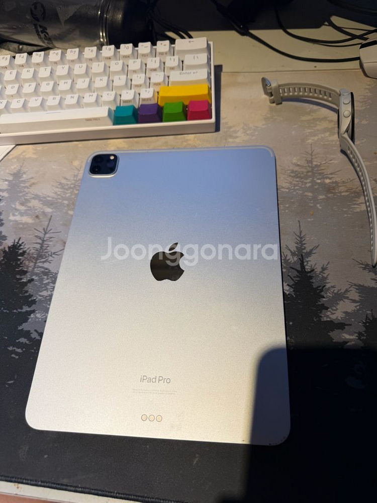 아이패드 프로 M2 실버 색상 판매합니다. 깔끔한 디자인이 돋보이는 제품입니다. 사진에서 보시는 것처럼 외관 상태 좋습니다. 다만 액정 약간 깨져있습니다 잘 티가 나지 않나 사용하는데 큰 문제는 없었습니다 기본 케이스 하나 드립니다 연락 주세요