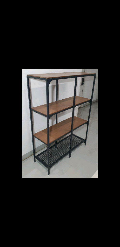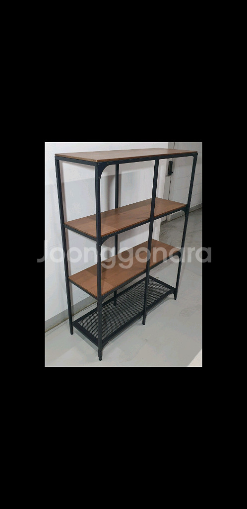 이케아 IKEA 피엘보 철제 원목 4단 선반장(블랙메탈) 판매합니다. [ 특징 ] - 메탈 프레임에 소나무원목 선반으로 모던하고 깔끔한 디자인으로 인테리어로 잘 어울림 - 다리부분에 높이조절가능 나사로 어떤 장소든 손쉽게 수평 맞춤 가능 - 맨 아래단의 선반은 철제 메쉬 재질로 화분과 같이 물기를 아래로 빼주거나 통풍이 필요한 물품 수납에 용이 [ 기타 내용 ] - 상태 : 중고(전반적 양호/사용감 있음) - 사이즈(가로 x 세로 x 높이) : 100cm x 36cm x 136cm - 장소 : 연희동 직거래(연희동과 마포역 사이 이동 동선 맞으면 직접 갖다드릴 수 있으니 일단 연락 주세요) - 연락처 : 공일공-3316-9412