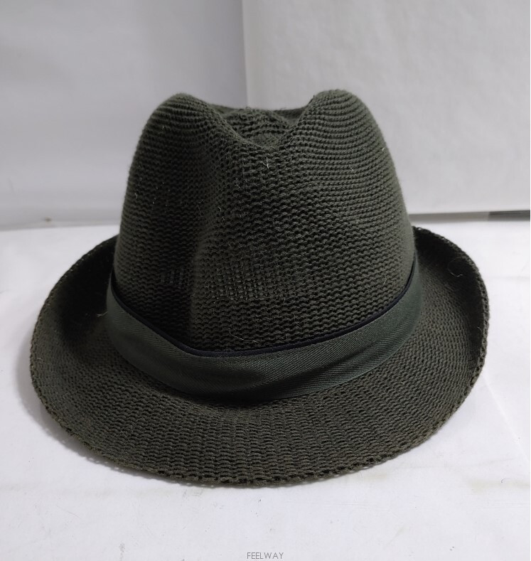 여시원한 스트로(Strow/밀짚) 또는 라피아(Raphia) 소재로 제작된 페도라(Fedora) 또는 중절모 스타일의 여름용 모자입니다. 이러한 형태의 모자는 통기성이 좋아 여름철 햇빛 차단 및 패션 아이템으로 널리 사용됩니다. 제품의 특징 및 소재 디자인: 상단이 움푹 들어간 크라운과 적당한 너비의 챙(Brim)을 가진 클래식한 페도라 디자인입니다. 내부에는 착용감을 높여주는 스? 밴드(땀받이)가 둘러져 있습니다. 색상: 짙은 카키 또는 차콜 계열의 어두운 톤으로, 다양한 여름 복장에 무난하게 매치하기 좋습니다. 소재: 라벨을 통해 면(Cotton) 100% 소재임이 확인되는데, 이는 일반적인 딱딱한 밀짚이 아닌 면사를 꼬아 성글게 짠 니트/크로쉐 형태의 제품임을 시사합니다. 이러한 소재는 부드럽고 가벼우며 관리가 용이한 장점이 있습니다. 교환,환불이 불가능하니 신중한 입찰 바랍니다 위탁특성상 반품,교환, 환불은불가입니다