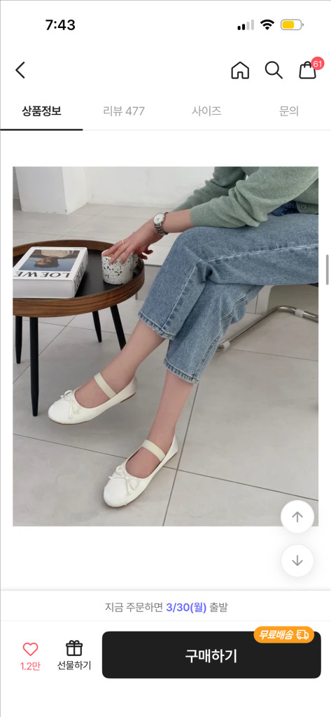 개인정보(거래정보)를 주고받는 행위는 사기에 노출될 수 있으므로 즉시 중고나라로 신고해 주세요발레리나 플랫슈즈 사이즈: 240 사이즈 미스로 판매하고 있습니다! 2만원 좀 넘게 구매했습니다!