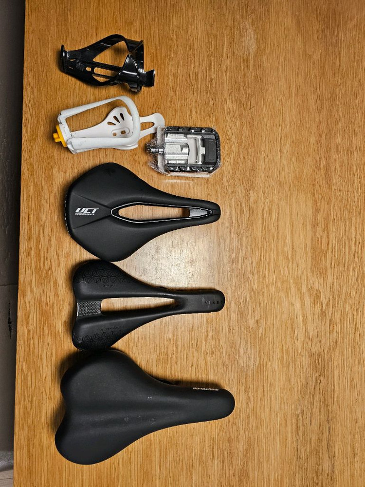 7d안장 UCT 안장(메디슨델타 안장) 몬타그나 미벨 탈거 안장 접이식페달 물병꽂이2개 일괄 5만원에 판매합니다. 대부분 양품입니다. 미벨에 쓰던거 탈거해서 뒀다가 이번에 안쓰는거 정리하면서 내놓습니다. 안장통 있으신분들 비교해보시면서 사용해보시기에 좋으실듯 합니다. 개별판매는 안하구요. 일괄 구매하시는분께 우선 판매합니다