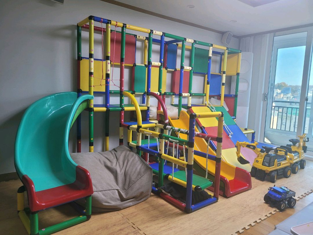 가로 3.6미터 세로 1.7미터 원색(아이들한테 원색이 좋더라고요) 가격은 제품가격이고 철거배송조립은 별도입니다 철거조립은 별도 업체신청해서 하시는거 추천드려요 https://www.playguard.co.kr/ 에서 이전설치 문의하시면되요 아이들이 좋아하는 실내 놀이터 정글짐입니다 사이즈가 크고 여러 가지 색상으로 아이들의 흥미를 유발합니다 슬라이드 2개가 있어 더욱 즐겁게 놀 수 있습니다