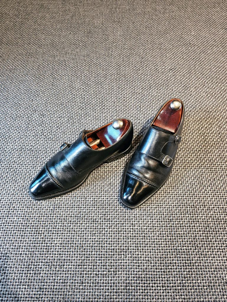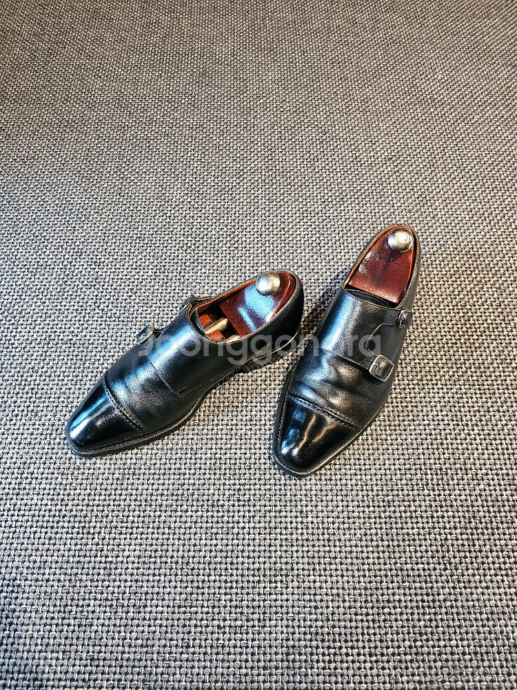 모든 제품은 출고 전 직접 컨디셔닝 및 슈케어 작업을 진행하여 즉시 착용 가능한 상태로 준비됩니다. 단순히 저렴한 중고가 아닌, 컨디션과 브랜드 가치를 기준으로 선별된 “실착 가능한 수준의 구두”만 취급합니다. 모델명 : 9006 사이즈 : 240(245) 컬러 : 블랙 사용감 : 적당한 사용감 느껴지는 상태 외피 : 가죽 바닥 : 가죽+스틸토 특이사항 : 앞코 일부데미지(발,볼 mto로 245사이즈감) 판매 가격 : 258,000 구성품 유무 : 없음 국내 최고의 슈메이커 금강제화의 남성 고급브랜드 헤리티지리갈 입니다. 헤리티지리갈은 같은 내부에서도 헤리티지리갈(일반) 헤리티지 세븐 헤리티지 블랙 으로 등급이 나뉘어져 있습니다. 최상위등급 블랙등급의 필립입니다. 세븐등급이 398,000원일때(현798,000) 598,000원에 판매됐던 제품으로, 해외 상급 슈메이커와 경쟁하기 위한 최고급사양의 라인업 입니다. 한층 짙은 블랙컬러와, 부드럽고 탄성좋은 카프, 헤리티지에서 보기 드문 세련된 라스트 스트레이트팁 더블몽크 디자인의 기본에 충실한 디자인이지만 굵은 팁 디자인이 전체적인 입체감을 느끼실 수 있습니다. 고급 드레스화로 충분히 활약 가능한 모델입니다. 운동화245~250 신장168~172 착용자 권장드립니다.