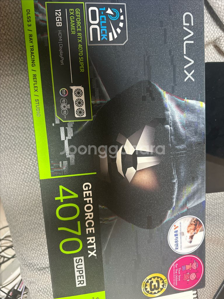 GeForce RTX 4070 SUPER 그래픽카드입니다. 박스 상태로 보관되어 있어요. 고성능 게이밍과 작업용으로 완벽한 제품입니다. x채굴 게임용으로만 사용했습니다. as 기한 27년 3월까지입니다