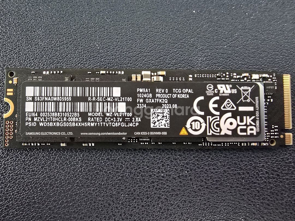 삼성전자 PM9A1 M.2 NVMe M.2 (2280)/PCIe4.0x4 (64GT/s)/TLC(토글)/DRAM 탑재/DDR4 512MB/컨트롤러: 삼성 Elpis/ [성능] 순차읽기: 6,900MB/s/순차쓰기: 5,000MB/s/ 읽기IOPS: 800K/ 쓰기IOPS: 800K/ [지원기능] TRIM/S.M.A.R.T/SLC캐싱/ AES 암호화/ [환경특성] MTBF: 150만시간/ TBW: 300TB/SLC: 94GB/PS5 호환/방열판 미포함/ 두께: 2.38mm/ 9g