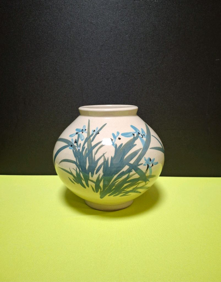🏞해천:김종원 청화백자 난초문호🏞 🌸공곡유향(空谷幽香) : 아무도 없는 쓸쓸한 골짜기에 향기가 그윽하네~🌸 봄(春)이 되어 난(蘭)이 꽃망울을 터뜨리고 피어 있습니다 너무 아름답지 않나요 녹색 유약의 푸른 꽃잎이 피어나 싱그럽고 생동감이 넘집니다~ 요즘 유약이 아니라 일제 강점기 이후부터 사용되기 시작한 유약으로 도자기 빛깔이 너무나 곱고 아름답습니다. 우유를 한달쯤 삭힌듯한 빛깔이 나서 너무나 고운 빛깔을 냅니다. 도자기 안목이 있으신 분들께서 모셔갔음 합니다. 1세대 도예가 작품으로 이분 작품이 시중에 거의 돌지 않습니다. 도자기 수집가님들은 남들과는 다른 기물을 소장하셔야 후일에 좋습니다. / 높이:16cm 구연부:9.6cm 몸 지름:18.5cm / 택배시 4000원 추가♡ 직거래♡ 반품x
