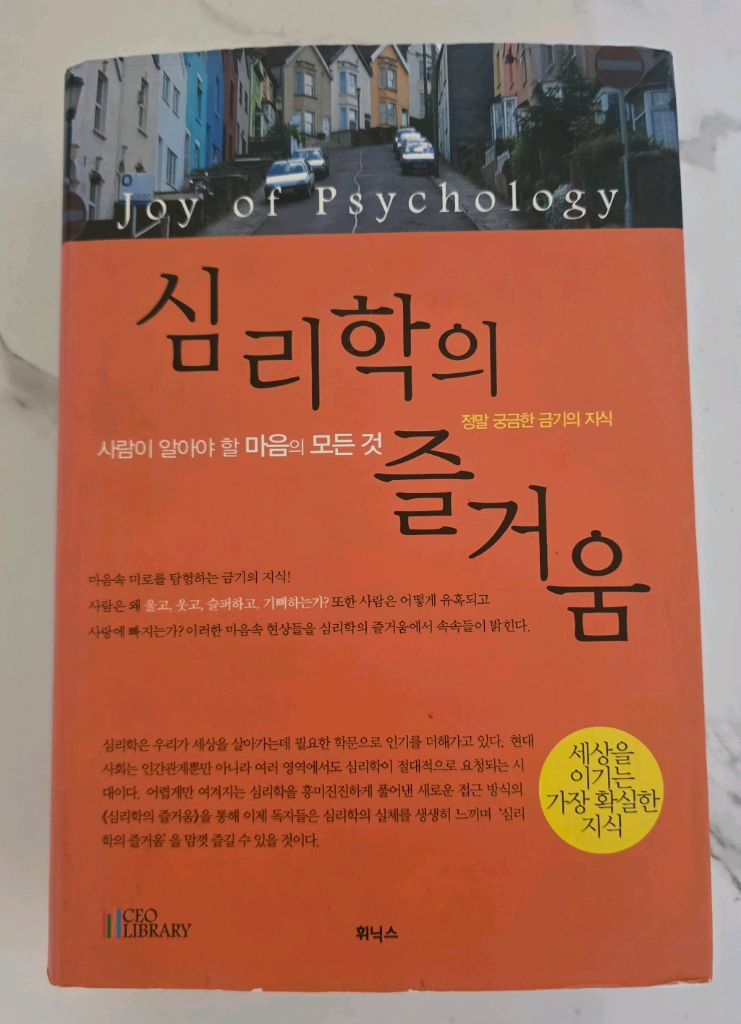 개인정보(거래정보)를 주고받는 행위는 사기에 노출될 수 있으므로 즉시 중고나라로 신고해 주세요심리학을 쉽고 재미있게 다룬 책입니다 표지와 내용 상태가 깨끗하고 읽기에 전혀 문제없습니다. 심리학에 관심 있으신 분들께 추천합니다 아주 싸게 드립니다 정가 35,000 문의 사항 없으시면 안심결제 하시면 됩니다 * 가격 네고 없습니다 *