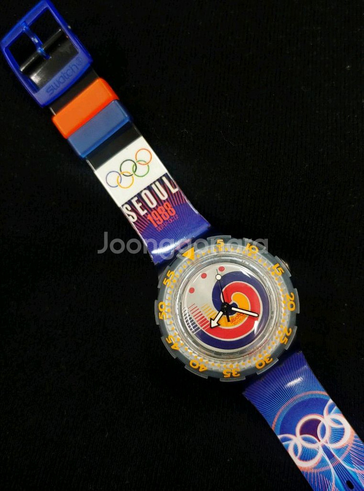 1988년 서울 올림픽 기념 스와치 시계입니다. 시계줄에 올림픽 마크와 서울 올림픽 로고가 선명하게 프린팅 되어 있습니다. 동작 이상무 배터리교체완료 소장 가치 있는 희귀템입니다 미사용 신품이구요 구매하실분만 연락주세요