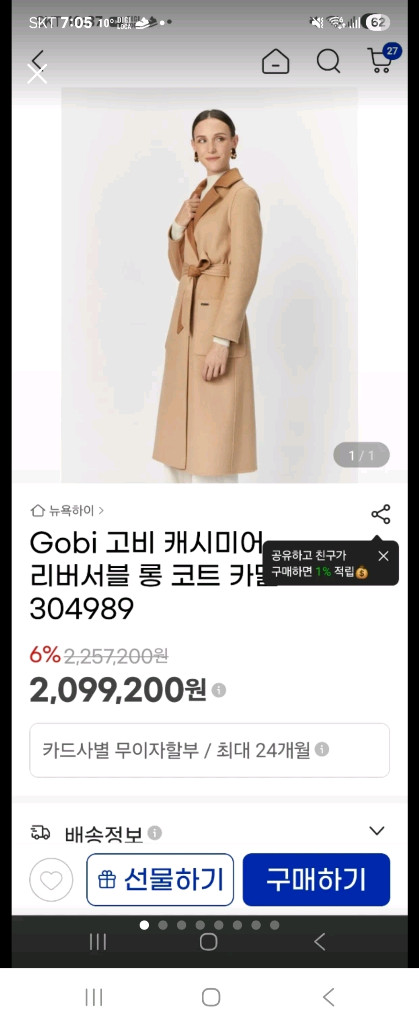 고비 캐시미어 리버시블 코트 M사이즈 기본스타일 사용감 좋아요